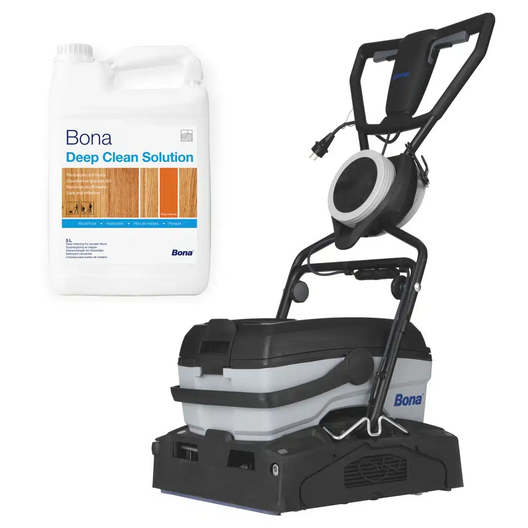 Bona Deep Clean Solution je všestranný vysoce účinný čistící prostředek pro hloubkové čištění lakovaných a olejovaných dřevěných podlah a teras, stejně jako elastických podlah. Je také vhodný pro důkladné čištění podlah před aplikací povrchové úpravy nebo pro čištění venkovních dřevěných teras. Má unikátní složení, které je bezpečné pro použití na dřevu. V případě použití v kombinaci s čisticím strojem Bona PowerScrubber vytváří naprosto čistý povrch pro aplikaci přípravků na údržbu. Lze použít i pro manuální čištění podlah a teras.