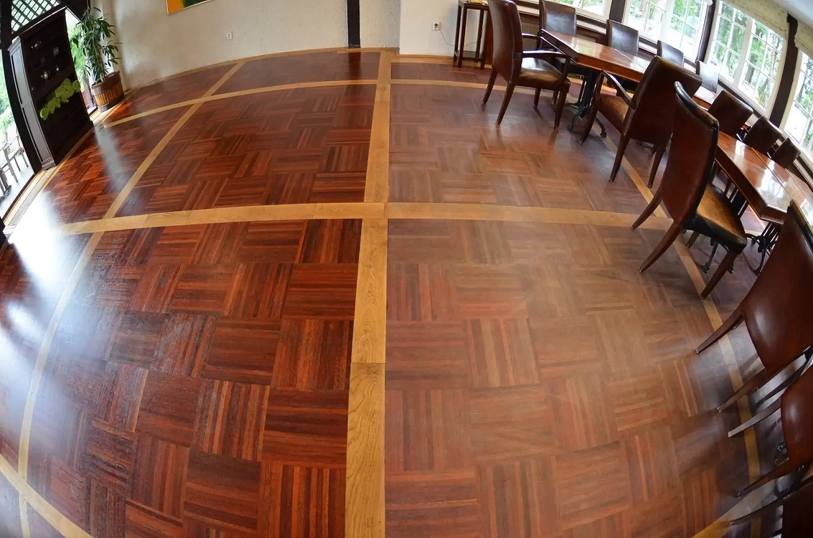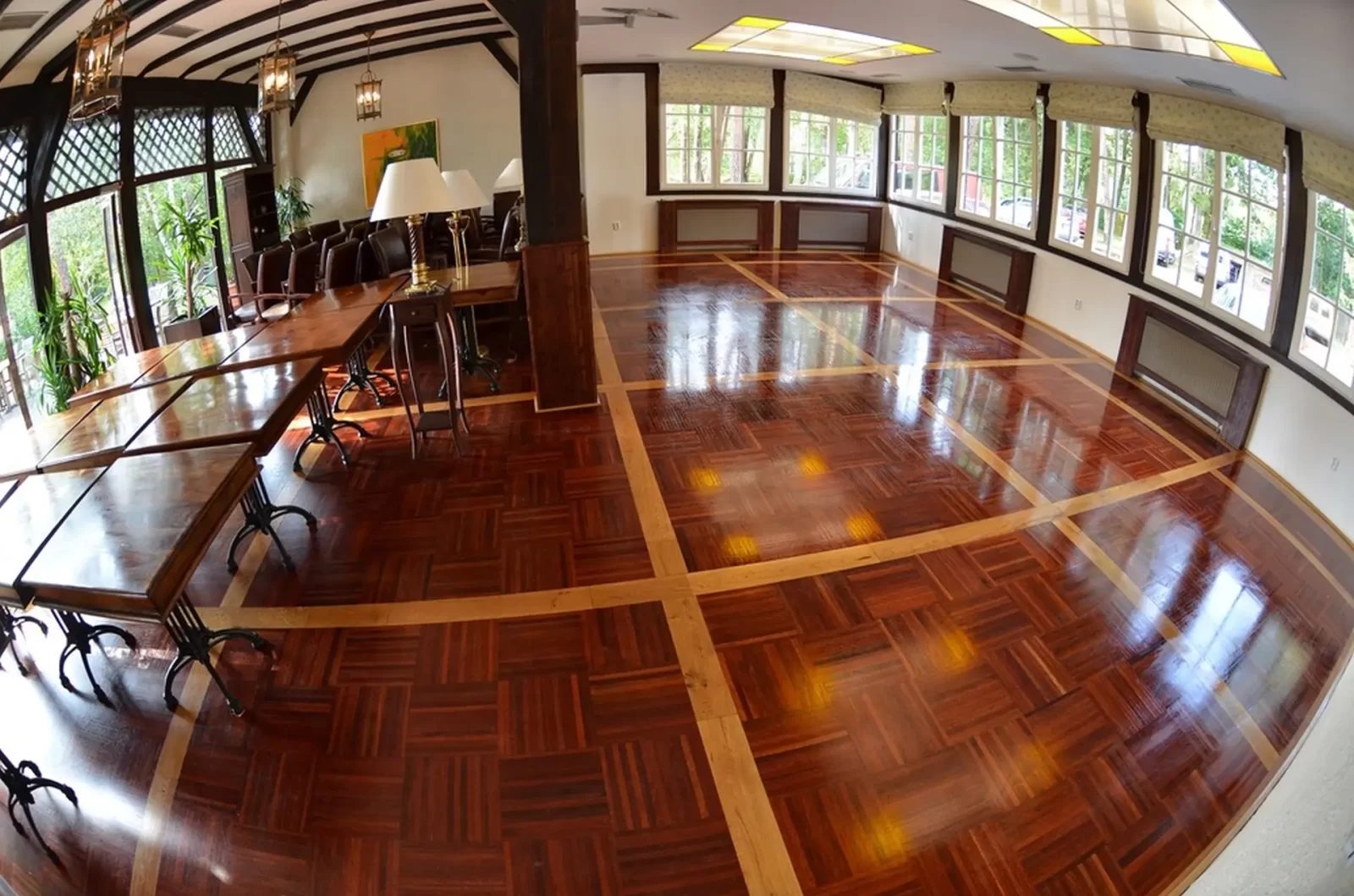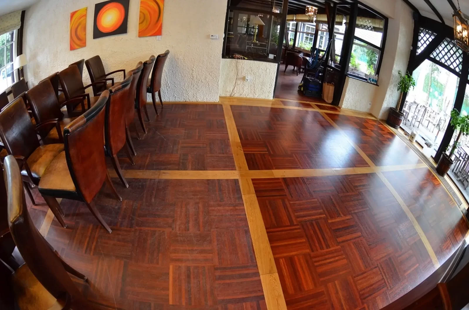 Podlaha byla vyčištěna pomocí Bona Power Scrubber čistícího stroje v kombinaci s čistícím prostředkem Bona Deep Clean System. Poté byla aplikována leštěnka Bona Parket Polish mat.