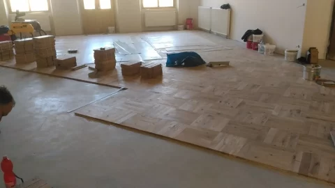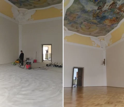 Pokládka nové podlahy: Klášter Želiv
