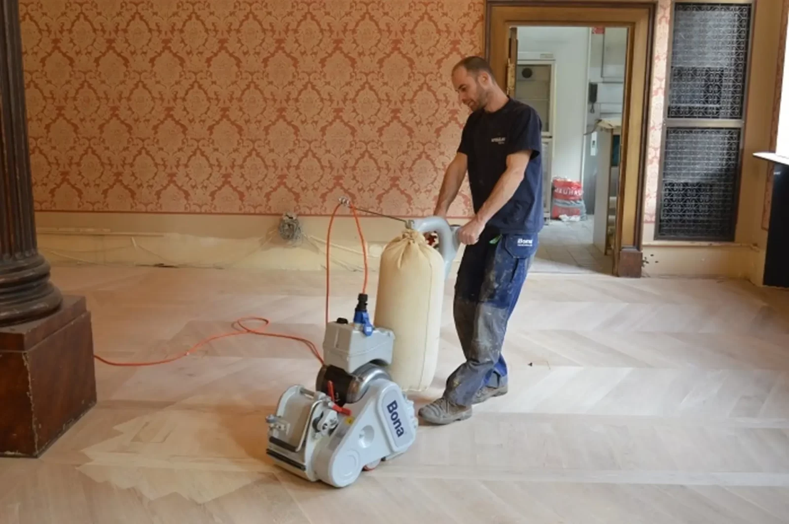 Ve všech prostorách byla úspěšně vyzkoušena nová bruska Bona Belt HD, za použití keramického a zirkonového brusiva Bona. Všechny plochy jsou vytmeleny tmelem Bona Mix&Fill Plus a ošetřeny dvěmi vrstvami Bona Tvrdého voskového oleje (Bona Hard Wax Oil). Dále zde byl navržen údržbový plán, který se bude postupně upřesňovat podle aktuálního opotřebení.