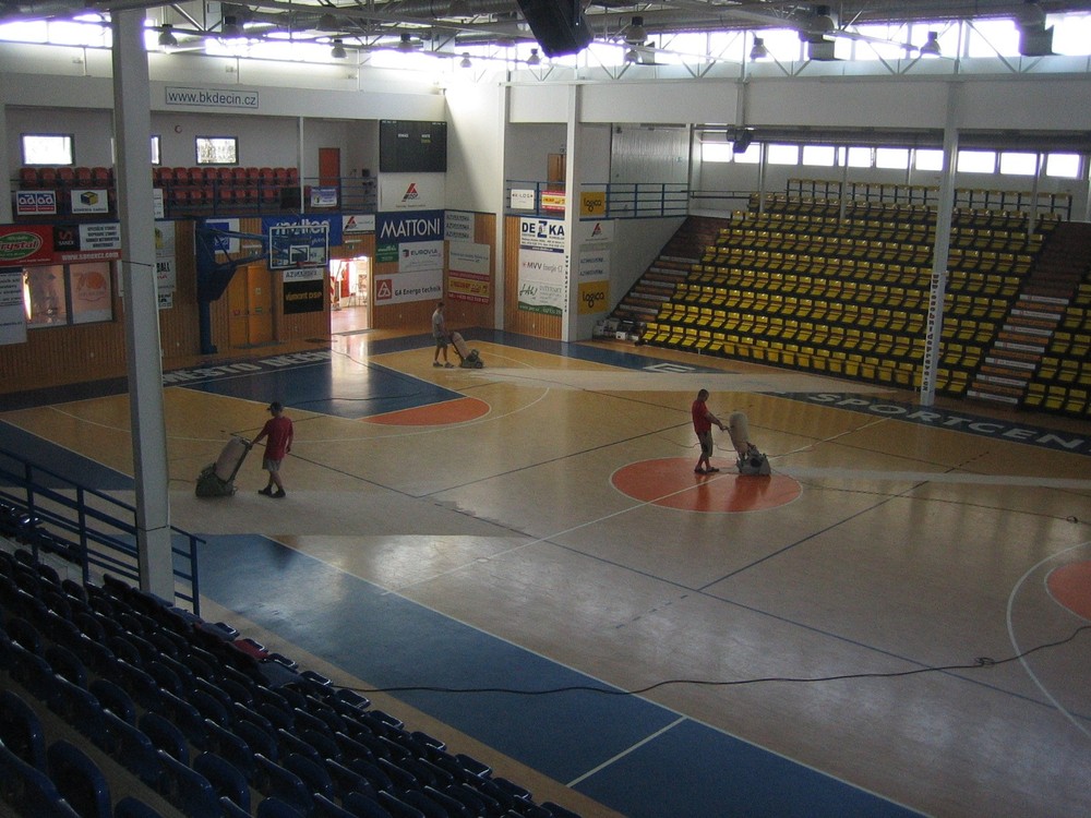 V průběhu prázdnin realizovala firma Cygnus interiér Vašich představ s.r.o. z Mostu dvě realizace velkých sporovních hal. Velmi prestižní zakázkou je renovace palubovky basketbalového klubu BK Děčín, který patří k úzké špičce Mattoni NBL. Celková plocha podlahy je cca 500m2. Realizace byla velmi časově náročná, protože se zde hráli zápasy České reprezentace a o 3 týdny později již začínali první zápasy domácího klubu.